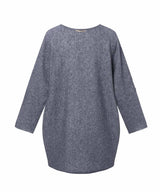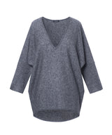 - Oversized V-neck, bat sleeve shape with asymmetric bottom