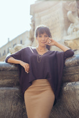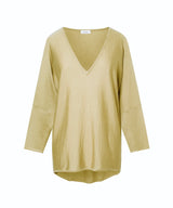 This oversize v-neck sweater will boost your wardrobe all summer long. The asymmetric rounded body shape compliments your natural curves and the deep v-neck gives an extra sexy look. The 3/4 sleeves are perfect for any summer night.