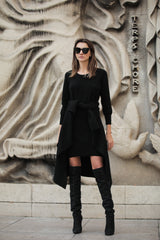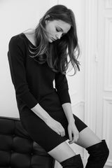 Our round-neck dress features a slight ball-shaped body shape while tight on the hips making it flattering and super comfortable. The 3/4 sleeves are perfect for winter and allow you to pair with your favorite jacket easily. Made of 100% tight stretch cashmere, you'll never want to take this piece off.