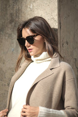 Our knee-length, 100% cashmere coat is your new go-to piece for cold winter days. Pair with your favorite sweater or top for the ultimate stylish and trendy look. 3/4 sleeves look great with a sweater underneath and can be folded or worn full length.