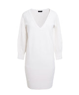 Just slip this V-neck dress on and you're ready to go for any event or occasion. Perfect for day-to-day wearing or in the evening with heels. With a slight ball-shape and tight on the hips, this piece is comfortable and super chic. Features 3/4 sleeves and sits above your knee.