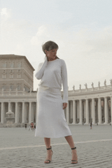 Cette jupe trapèze en laine fine peut être portée toute l'année. Sa taille minimaliste n'affiche aucun élastique visible. Vous pouvez la porter en taille haute ou plus basse selon le style et la longueur que vous désirez. Vous adorerez associer cette jupe à l'un de nos tops ou pulls pour un look ultra confortable et glamour.