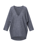 - Col V oversize, coupe chauve-souris avec bas asymétrique